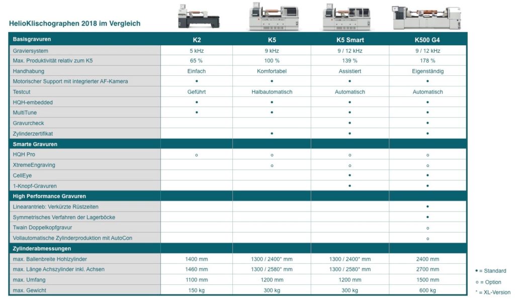 Mit seinen HelioKlischographen (K) dominiert Hell Gravure Systems (Hell) eindeutig den Markt der Graviermaschinen für Tiefdruckformen. Nun hat Hell kürzlich sein Produktprogramm überarbeitet. Mit der Neuvorstellung des K2, dem Relaunch von K5 und K5 Smart und einem großen Update für den K500 erfahren alle HelioKlischograph-Modelle eine Steigerung ihrer Leistungsfähigkeit.